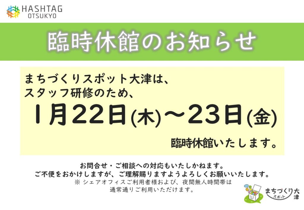 スタッフ研修にともなう臨時休館についてお知らせいたします。